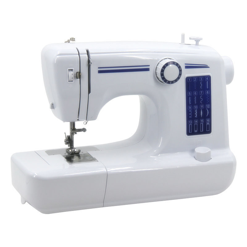 1) Οι λειτουργίες για να κάνει ευθεία τρύπες στο τέλος κουμπί, τοποθέτηση κουμπί, φερμουάρ ράψιμο και 16 είδη μοτίβο ράψιμο